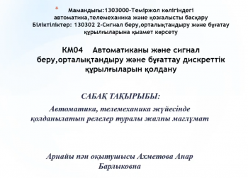 Сабақтың тақырыбы: Басқару пультінен орталықтандырылған бағыттаманың бұрылу мүмкіндігінің жойылуы