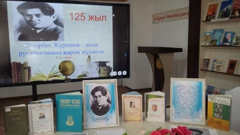 Темирбек Жургенов-деятель, который во все времена и в политической обстановке увлекал духовно-культурную, учебно-образовательную сферу нашего народа.Он – неординарная личность, имя которого осталось в памяти народа навечно.На выставке были представлены статьи в журнале «Аңыз адам»: «Ерекше іскер және қайратты нарком» А.Тажибаева, воспоминания,статьи под темой «Айтылмаған аманат» Ш. Жиенкуловой, супруги Т.Жургенова Д.Жургеновой были представлены рефераты, рисунки, методические пособия. Также был проведен обзор книг Е. Зангирова «Ұлт рухы», Б. Имангалиева «Темирбек Жургенов».